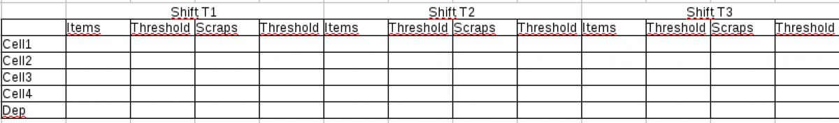 - registrare i dati di pezzi prodotti e scarti per linea e per dipartimento, ogni turno: registrare anche i valori delle soglie in modo che i dati siano utilizzabili anche in un secondo momento, anche se le soglie cambiano