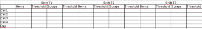 4. registrare i dati di pezzi prodotti e scarti per linea e per dipartimento, ogni turno: registrare anche i valori delle soglie in modo che i dati siano utilizzabili anche in un secondo momento, anche se le soglie cambiano
