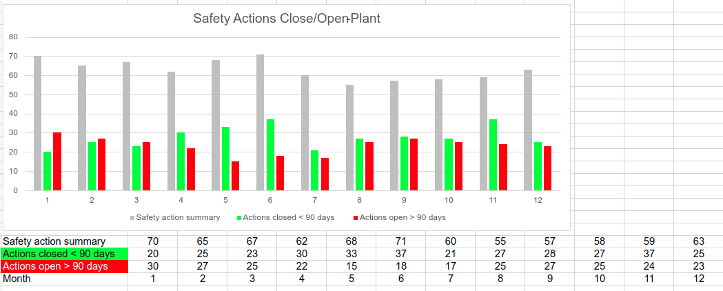 Monitoraggio del rate di chiusura delle azioni che provengono dalle JSO, Safety Reports e Risk Assessment.