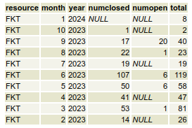 - retv: rec(resource,xasys,year,v_total,v_numclosed,v_numopen) ESEMPIO:
