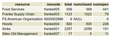 - retv: rec(resource,xasys,v_total,v_numclosed,v_numopen) ESEMPIO: