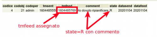 Se rigettiamo una attività, abbiamo la possibilità di riprogrammarla richiamando nuovamente la sendobjiter con una nuova data. Effettuando questa operazione otteniamo quanto segue: