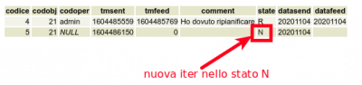 La prima sendobjiter crea il primo iter con lo stato = 'N' (vedi sotto).